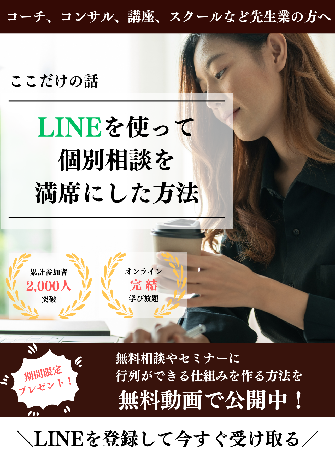 • 個別相談やフロントセミナーを満席にしたいけれど、その方法がわからない…